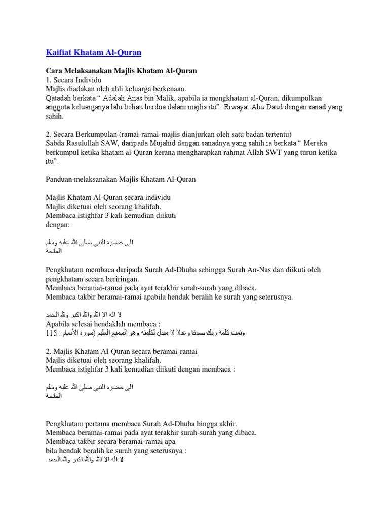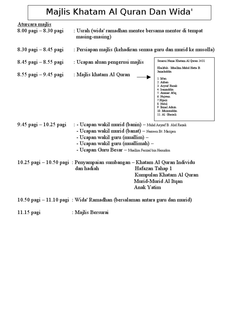 Aturcara Majlis Khatam Al Quran Pdf